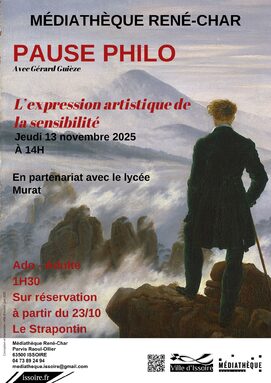 Pause philo jeudi 13 novembre sur le thème "L'expression artistique de la sensibilité".